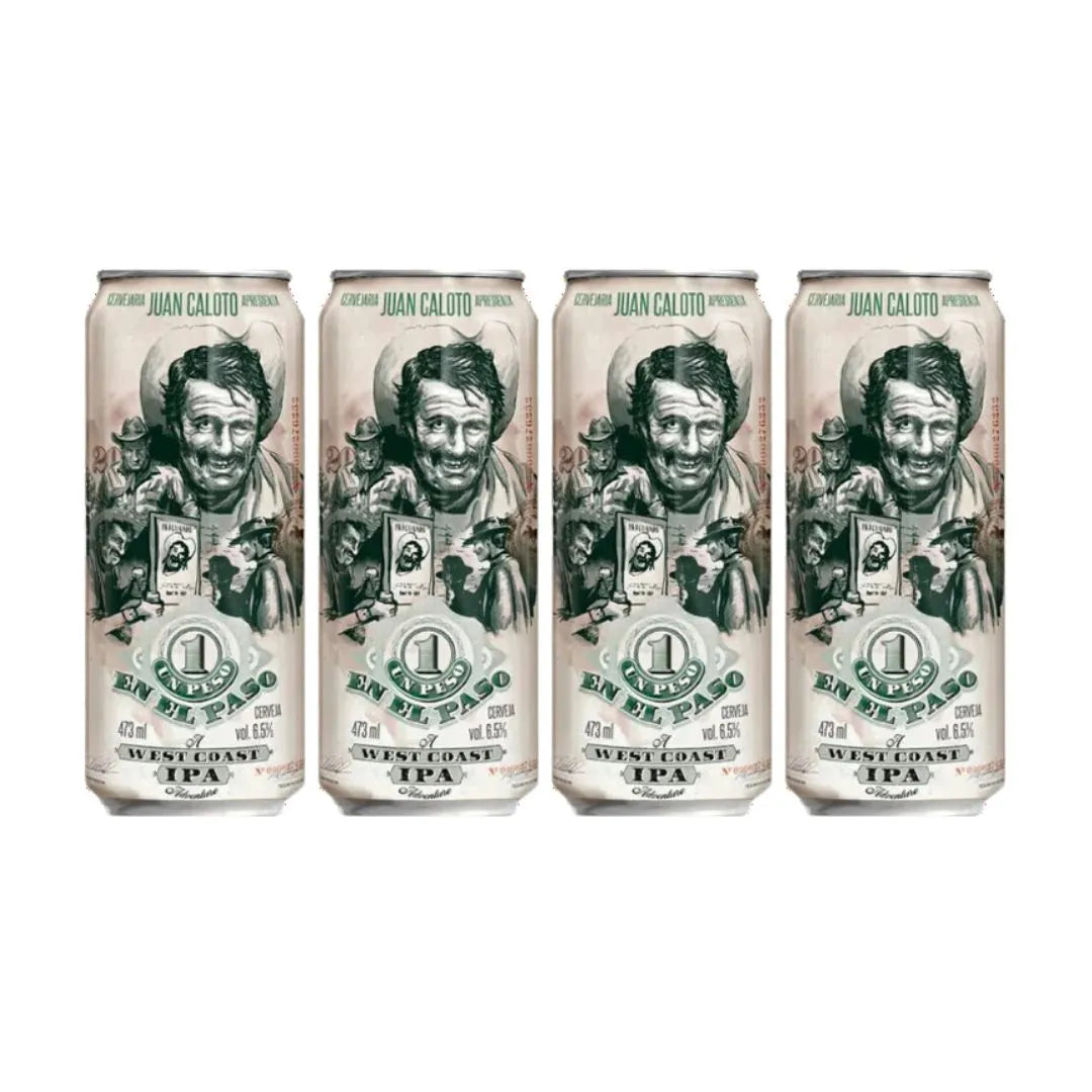 A Juan Caloto Um Peso em El Paso, como todas da marca, tem uma história. Aqui Juan Caloto se vê cercado de caçadores de recompensa. Mas um erro no cartaz de procurado fez com que a recompensa pela sua cabeça saísse como 1 peso. Ou seja, ele não vale nada. E com o que tem no bolso paga sua liberdade e ainda toma uma cerveja com os bandoleiros que queriam entregá-lo para o Xerife. A inspiração para essa história veio de notas de pesos no início do século passado. Elas foram compradas em leilão para decorar o Esconderijo Juan Caloto. Já a cerveja vale muito! Os lúpulos Mosaic e Citra, muito presentes em diversas Juicy IPAs estão também nessa West Coast IPA, apoiados por Simcoe e Chinook. O resultado é um perfil complexo e muito refrescante. De cor dourada, levemente turva, com ótima espuma, persistente, ela apresenta aroma floral e resinoso em destaque, com frutado, como maracujá, toranja, pêssego e manga em segundo plano. Na boca, o amargor é alto, limpo, e o sabor mais floral e resinoso,com frutado suave, além de corpo médio-baixo e boa carbonatação. O aftertaste é seco, de amargor alto e frutado mais intenso. Harmonize com hambúrguer de costela, queijos azuis, como gorgonzola, e costelinha suína ao barbecue.